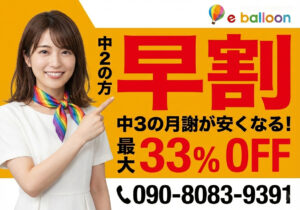 中2のうちに受験勉強を準備することを応援するため、イーバルーン学習塾では「早割キャンペーン」をご用意しました。